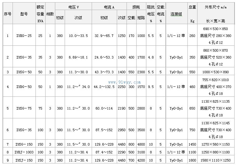 | 一次(V) | 二次(V) | 高壓 | 崔壓 | 空載W | 短路W | 電壓% | 電境% | ||||