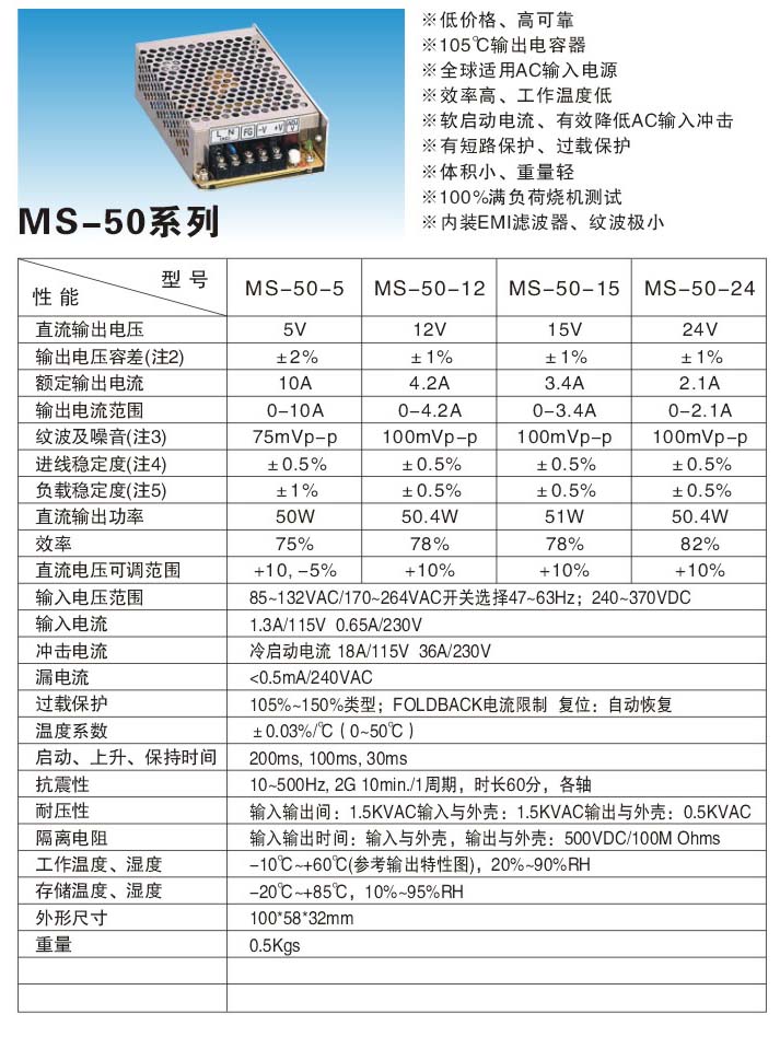 MS-50型AC/DC單組電壓輸出開關(guān)電源