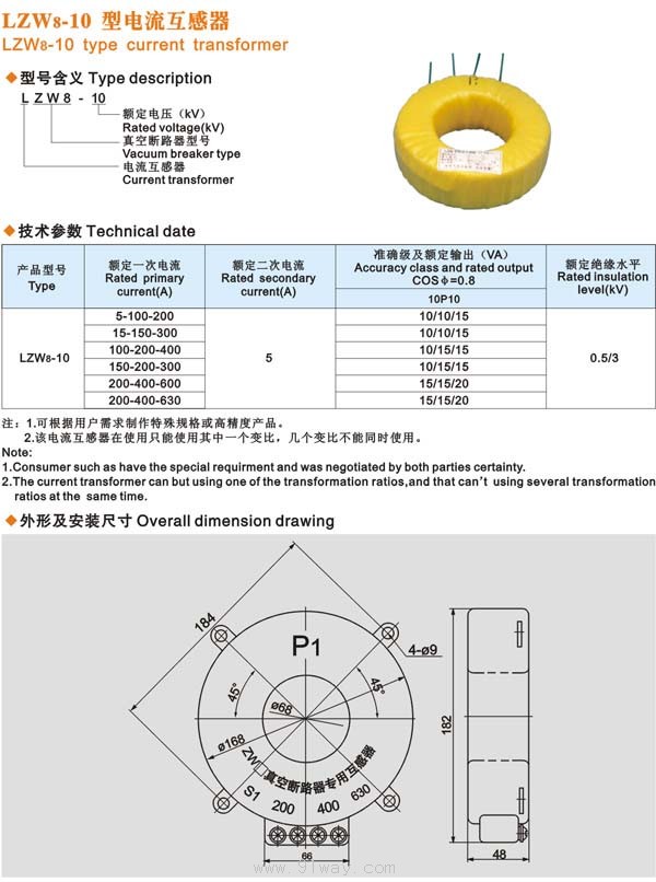 LZW8-10型電流互感器為母線式、澆注絕緣、戶內型產品,適用于ZW8-10型真空斷路器中,作電流測量及繼電保護作用。