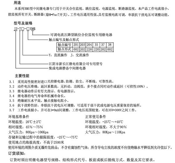 JZ-7口-口XMS可調電流壓降型跳位合位監視專用繼電器
