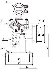 4.1 直通拆卸法蘭連接式流量計和直通插入法蘭連接式流量計(見圖2、圖3和表2)