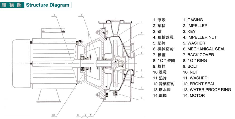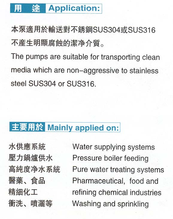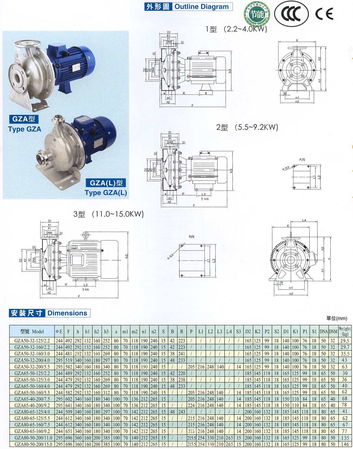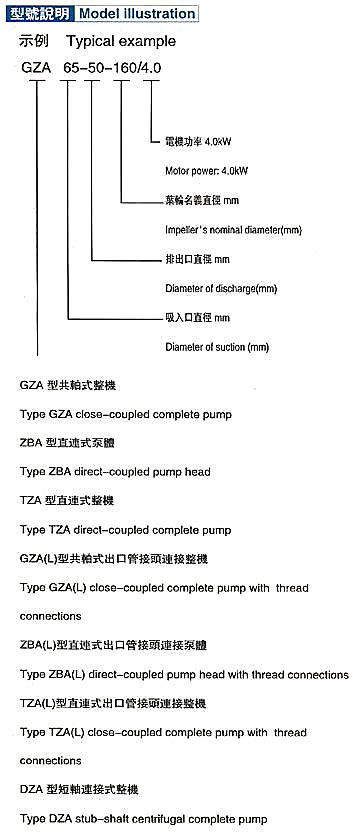GZA型共軸式不銹鋼離心泵材質 技術參數 符合GB5662/DIN24255標準離心泵 采用SUS304和SUS316不銹鋼