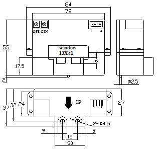 引腳說明:1:+15V 2:-15V 3:Vout 4:0V(電源地) OFS:零點調節 GIN:幅度調節
