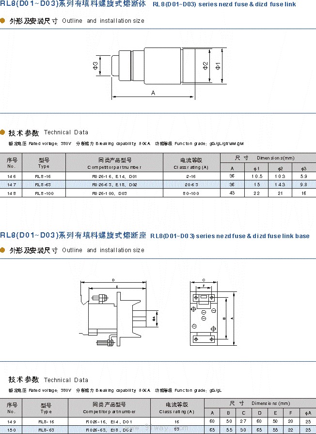 RL8(D01~D03)系列有填料螺旋式熔斷器