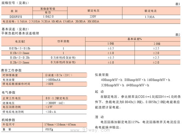 DDSF858型單相電子式多費率電能表主要技術(shù)參數(shù):