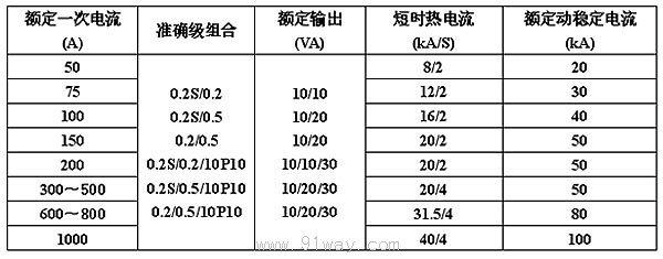 準確級組合及相應的額定輸出動熱穩定電流見表;
