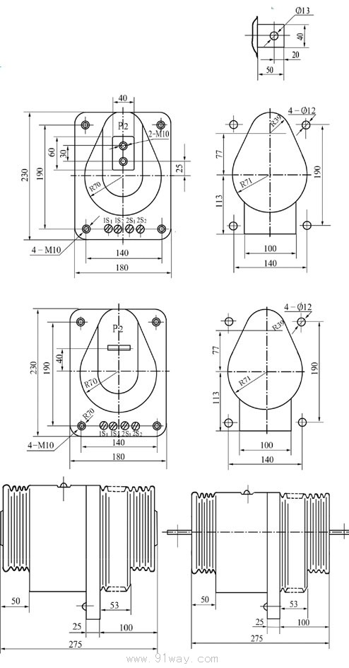LFZB3-10系列電流互感器為環氧樹脂澆注全封閉穿墻式結構,適用于額定電壓為10kV及以下、額定頻率為50Hz的電力線路及其設備中作電流、電能的測量和繼電保護使用。本產品的特點為體積小、重量輕、可穿墻安裝,并且加強了外絕緣,屬工況型產品、可取代LA-10等老產品。LFZB3-10基礎上,利用電容分壓原理,將高壓帶電顯示裝置的傳感器部分直接加在互感器上、加上傳感器后的互感器所有技術參數均不受影響,并且不增加體積,是國內首創的新一代產品。