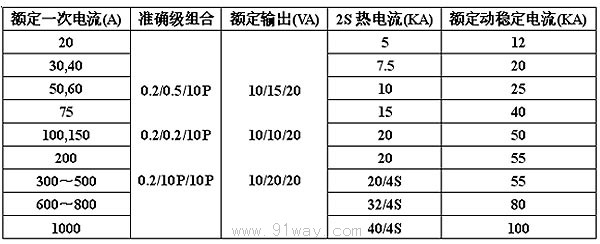 額定一次電流,準(zhǔn)確級(jí)組合及相應(yīng)的額定輸出,動(dòng)熱穩(wěn)定電流見表;