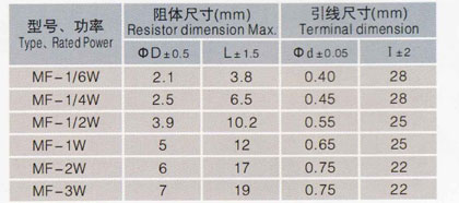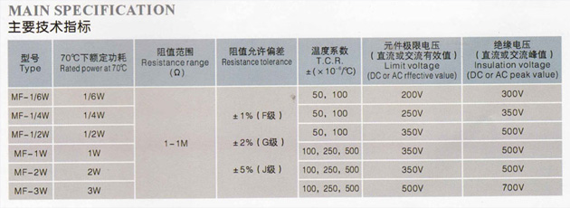 MF型金屬膜電阻器