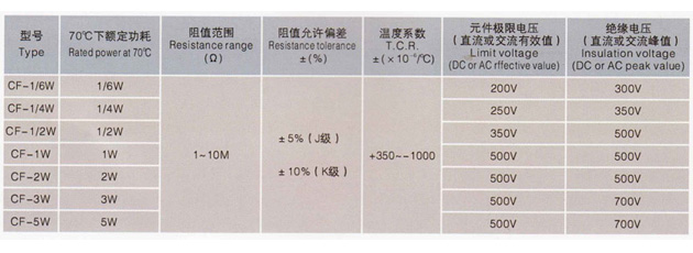 CF型碳膜電阻器
