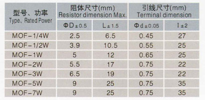 型號規(guī)格: MOF/RY型金屬氧化膜電阻器(阻燃型)