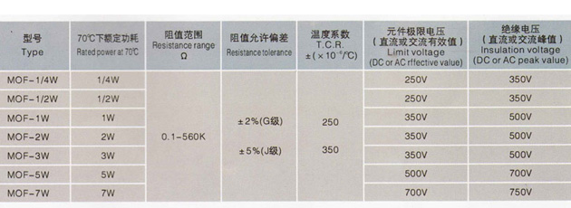 MOF/RY型金屬氧化膜電阻器(阻燃型)技術(shù)參數(shù)