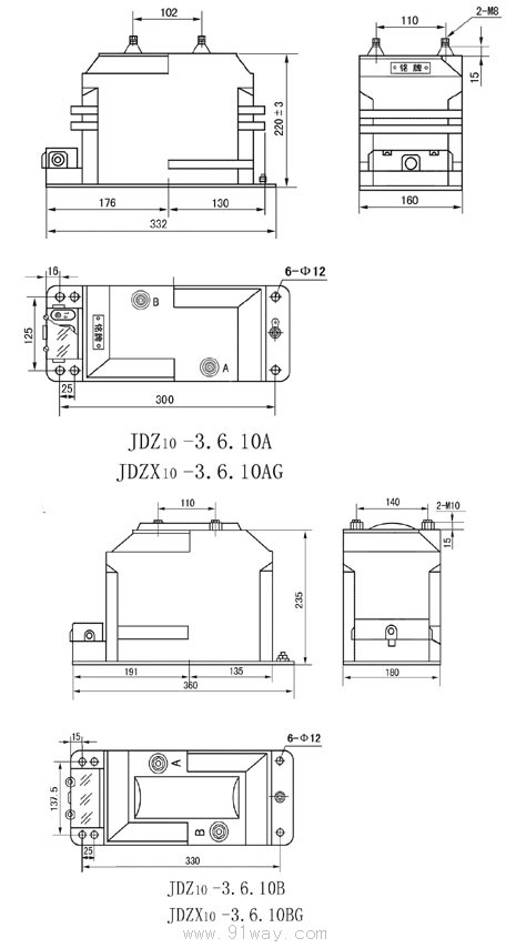 JDZ10-3.6.10、JDZX10-3.6.10G電壓互感器采用環(huán)氧樹脂澆注成型、支柱式全封閉結(jié)構(gòu),適用于額定頻率50Hz,額定電壓10kV及以下戶內(nèi)裝置的電力系統(tǒng)中作電壓、電能測量及繼電保護用。由于互感器采用全封閉澆注絕緣,尺寸小、重量輕,適宜于任何位置,任意方向安裝。