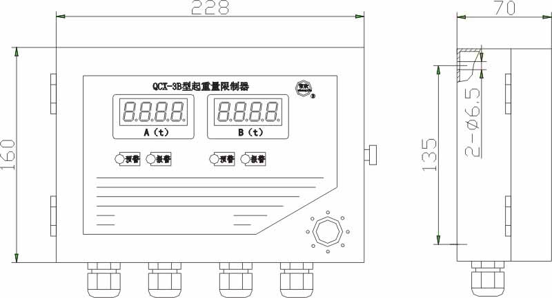 QCX-3B型起重量限制器儀表在2B型的基礎上改制的,具有2B型的功能外,還具備雙傳感器雙通道輸入,實現分別顯示分別控制。