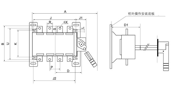 DGLC-125~630A直接操作 柜外操作安裝底板 柜外手柄座安裝尺寸