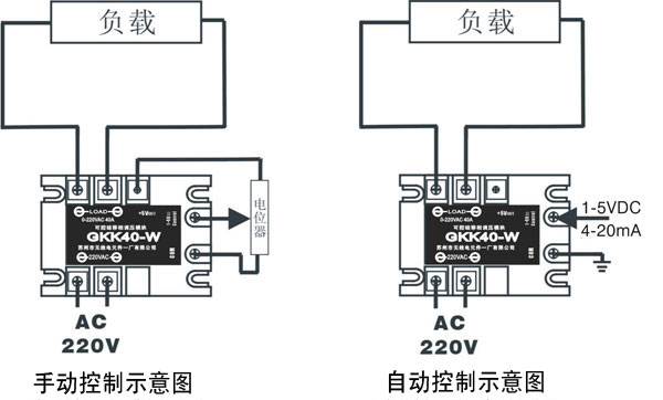 Gkk10~40-W系列單相功率交流調(diào)壓模塊是可直接驅(qū)動(dòng)10~40A以下負(fù)載的調(diào)壓模塊,其控制方法為手動(dòng)或自動(dòng),手動(dòng)輸出外接電位器控制時(shí),控制電源由模塊自身提供,無(wú)需使用外部電源;自動(dòng)直接連接空溫儀表。