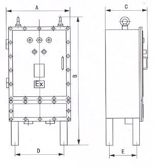 適用范圍 爆炸性氣體混合物危險場所:1區、2區 爆炸性氣體混合物:ⅡA、ⅡB 溫度組別:T1-T4 防護等級:IP54 產品特點 鋼板焊接外殼內裝ABB或施耐德等公司生產的固態軟起動器 適用于50Hz,-380V/660V 15-90kW三相異步電動機不頻繁起動和停止 采用逐步升壓的方法,實現平滑起動 可根據負載特性選用常規起動和重載起動 起動參數可自動設定 外置式參數設定按鈕,通過視鏡顯示面板參數 鋼管或電纜布線 型號含義 外形及安裝尺寸
