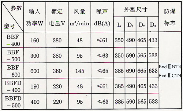 BBF系列隔爆型交流壁扇外形及安裝尺寸 主要技術(shù)參數(shù)