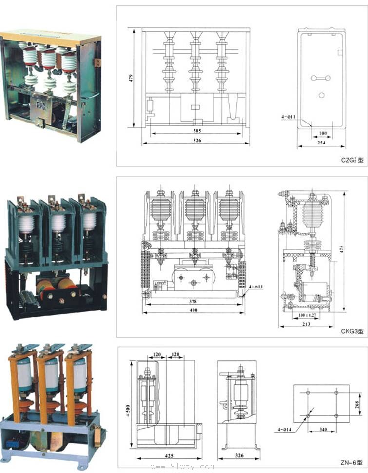 3.CZG1,CZG2型交流高壓真空接觸器外形及安裝尺寸