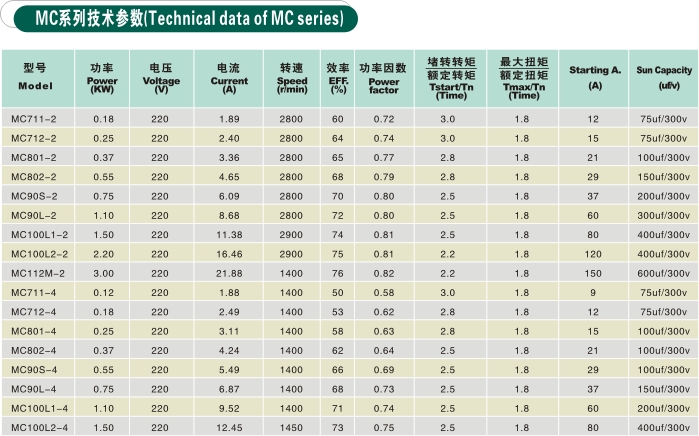 | 產品名稱: | MC系列單相異步電動機 | |||||