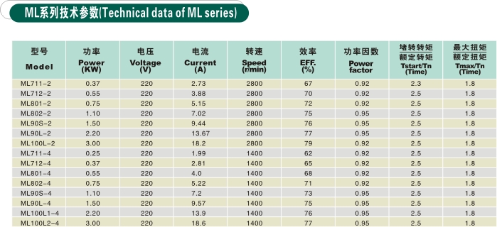 ML系列異步電動機(jī)適用于滿負(fù)荷啟動的機(jī)械設(shè)備。