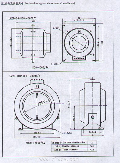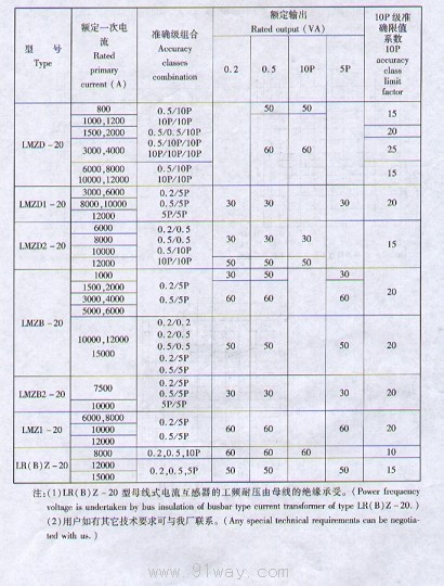 LMZD系列高壓電流互感器性能符合IEC 標準和GB1208-1997《電流互感器》額定絕緣水平: 23/65/125kV負荷功率因數: cosφ=0.8(滯后)額定頻率: 50Hz額定二次電流: 5A