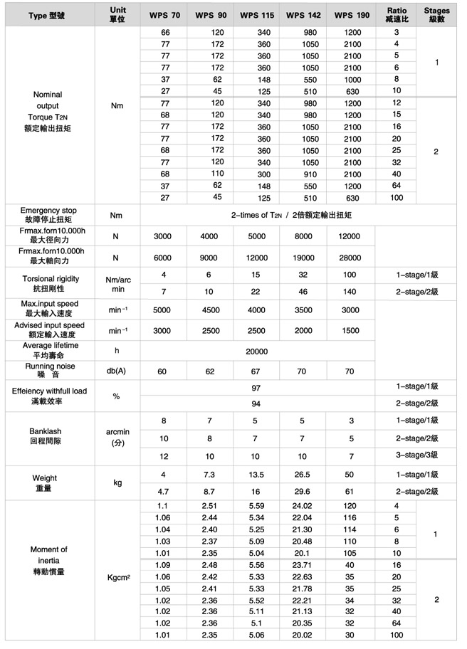 WPS系列精密行星減速機(jī)技術(shù)參數(shù)