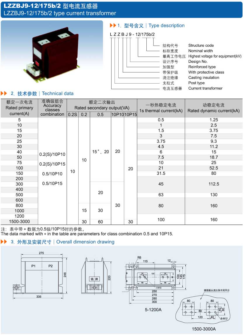 LZZBJ9-12/175b/2電流互感器