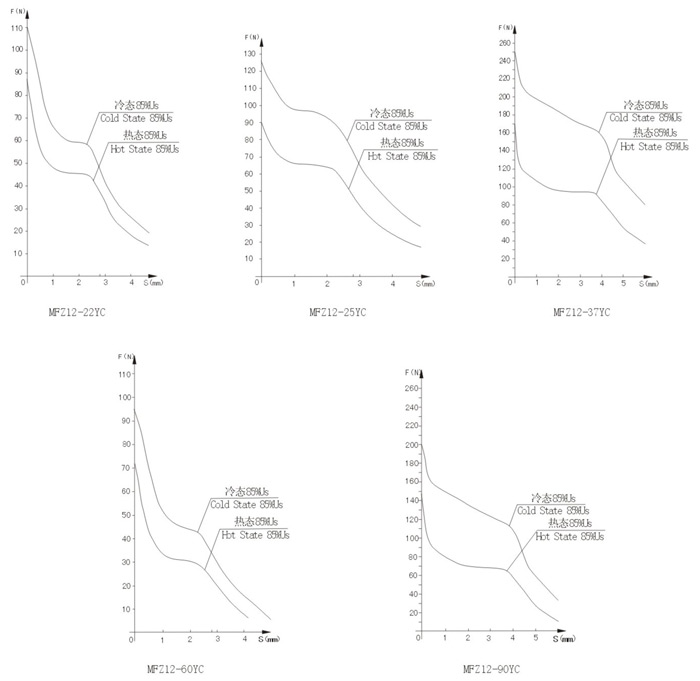MFZ12-YC系列直流濕式閥用電磁鐵行程-力特性曲線