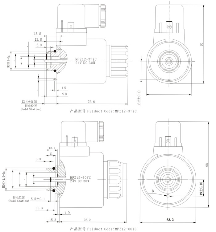 | 產品名稱: | MFZ12-YC系列直流濕式閥用電磁鐵 | |||||