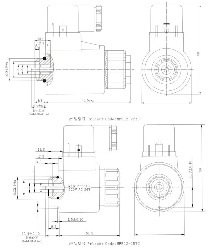 MFB12-YC系列交流本整型濕式閥用電磁鐵外形及安裝尺寸