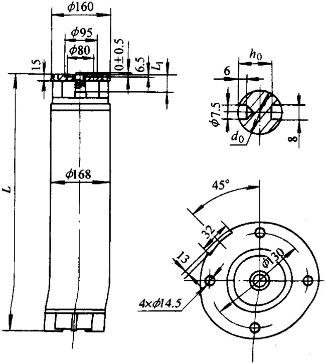 使用條件 電動機應完全潛入水中立式使用,其潛入深度不大于70m,最地位置劇井底底不少于5m;電動機為連續工作制;介質水溫不高于20℃;水中固體雜質含量(重量比)不超過0.01%;介質水中不含腐蝕性物質,pH值在6.5~8.5范圍內;電動機內必須沖滿潔凈的清水。