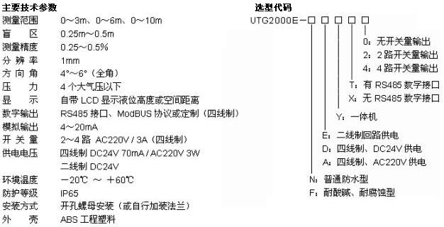 | 產品名稱: | UTG2000E型一體式超聲波液位計 | |||||
