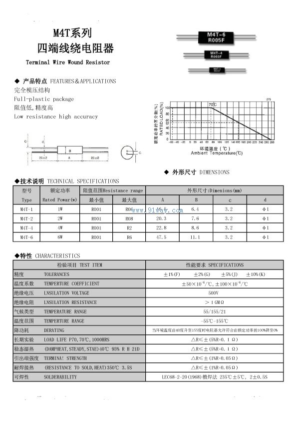 M4T系列模壓軸向四線電阻器
