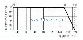 RI51型高溫電阻器,是一種新型的科研軍品電阻器。該電阻器具有工作溫度高、工作電壓高、耐濕、耐電脈沖及長期工作性能穩(wěn)定可靠等特點(diǎn)。當(dāng)環(huán)境溫度高于180℃時(shí),應(yīng)按下圖降功耗使用。