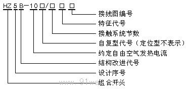 用途 HZ5B組合開關是HZ5D的改進型,適用于電路中作電動機起動、停止、換向、變速之用。 HZ5B系列組合開關產品型號及其含義主要技術參數