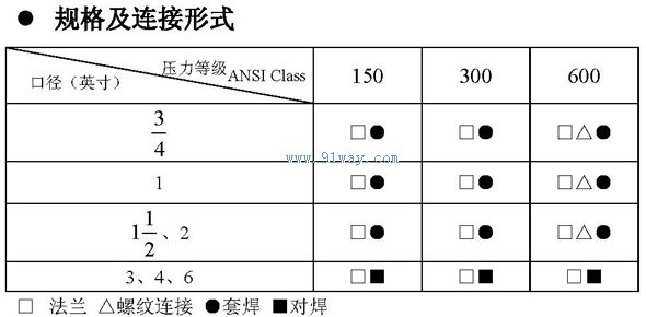 注:法蘭連接標準按ANSI B16.5-1981