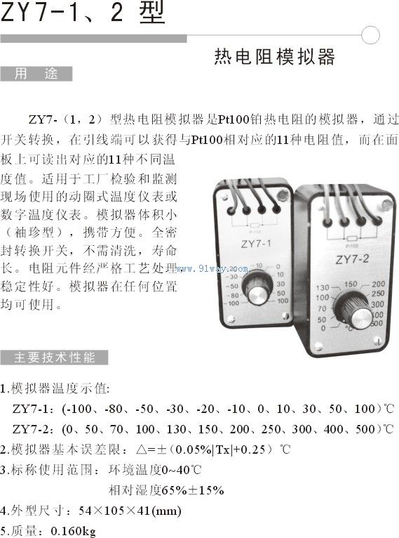 ZY7-2熱電阻模擬器 模擬范圍:0 0C~500 0C共11點(Pt100) 準確度: 0.05%