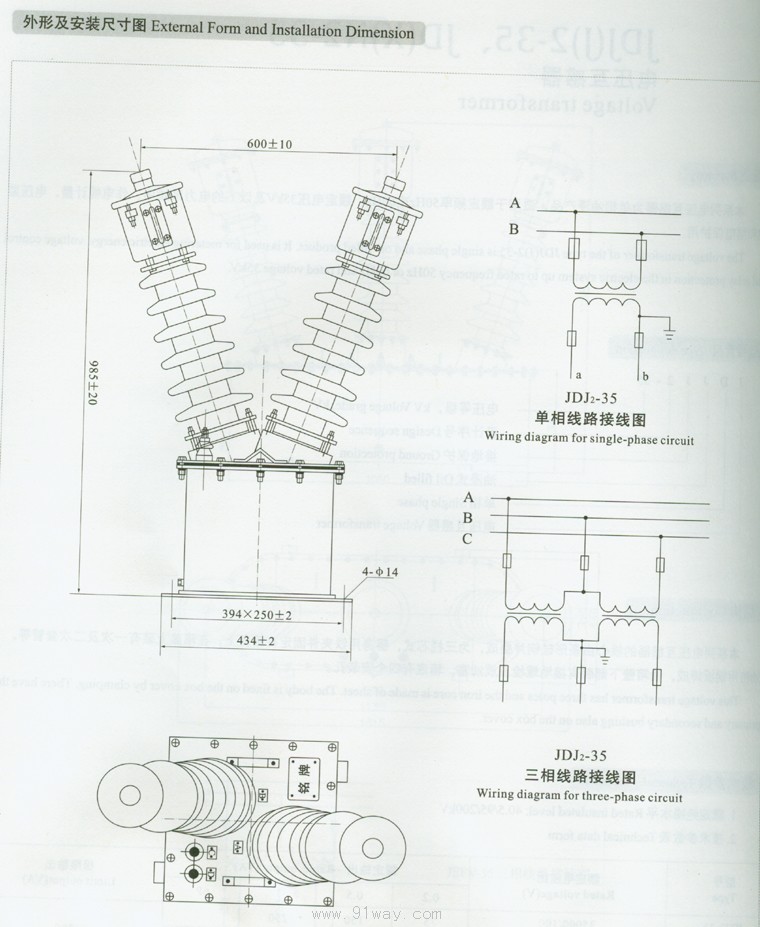 JDJJ2-35型電壓互感器適用于戶外供額定電壓35kV、額定頻率50Hz的交流電路中作電壓、電能測量和繼電保護用。