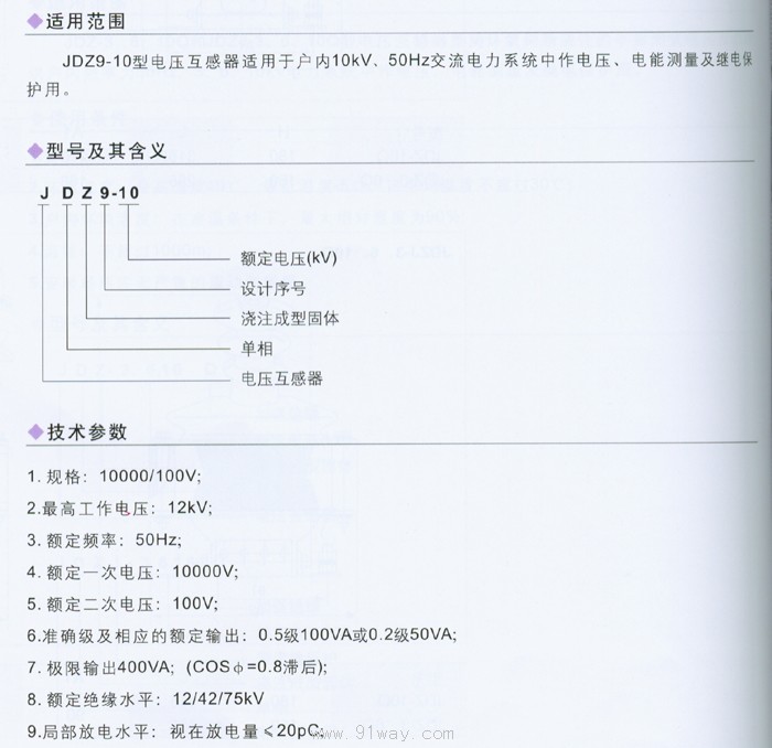 JDZ9-10型電壓互感器適用于戶內(nèi)10kV、50Hz交流電力系統(tǒng)中作電壓、電能測量及繼電保護(hù)用。