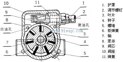 本泵為葉片式內有溢流閥裝置,當油箱加滿油料后,要關閉油槍時,葉片泵可繼續工作,油壓超過額定壓力時泵內溢流閥即起自動作用,將油料自行回流到油池或油罐內等特點。