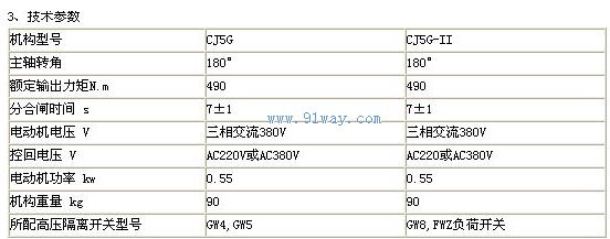 CJ5G型電動機操作機構(gòu)(以下簡稱CJ5G型機構(gòu)),是由交流電動機驅(qū)動,通過齒輪及我論蝸桿減速的操作機構(gòu),供操作高壓隔離開關(guān)和接地開關(guān)之用,可進遠方控制,也可以就地用電動控制或利用手柄進行手力操作。箱內(nèi)裝設(shè)手動與電動聯(lián)鎖裝置,以實現(xiàn)手動操作與電動操作之間的電氣聯(lián)鎖。