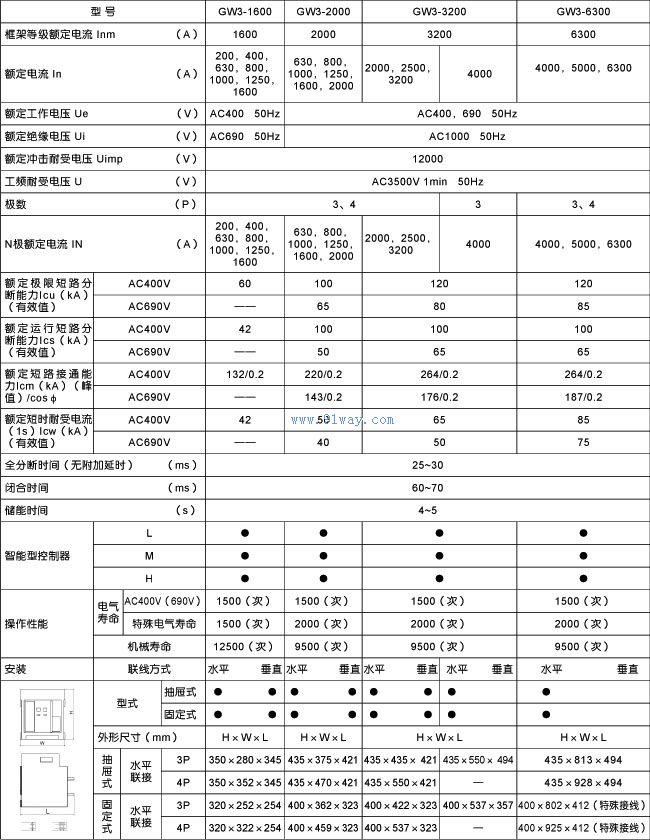 GW3系列萬能式斷路器技術參數