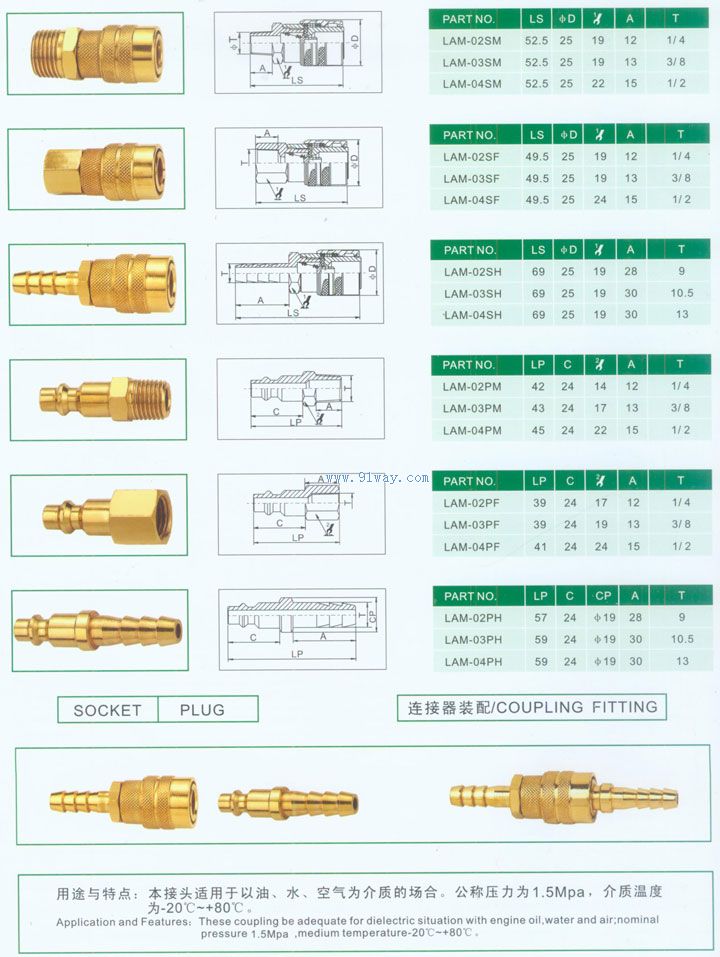 | 產(chǎn)品名稱(chēng): | LAM美式單開(kāi)閉氣動(dòng)快速接頭(黃銅) | |||||
