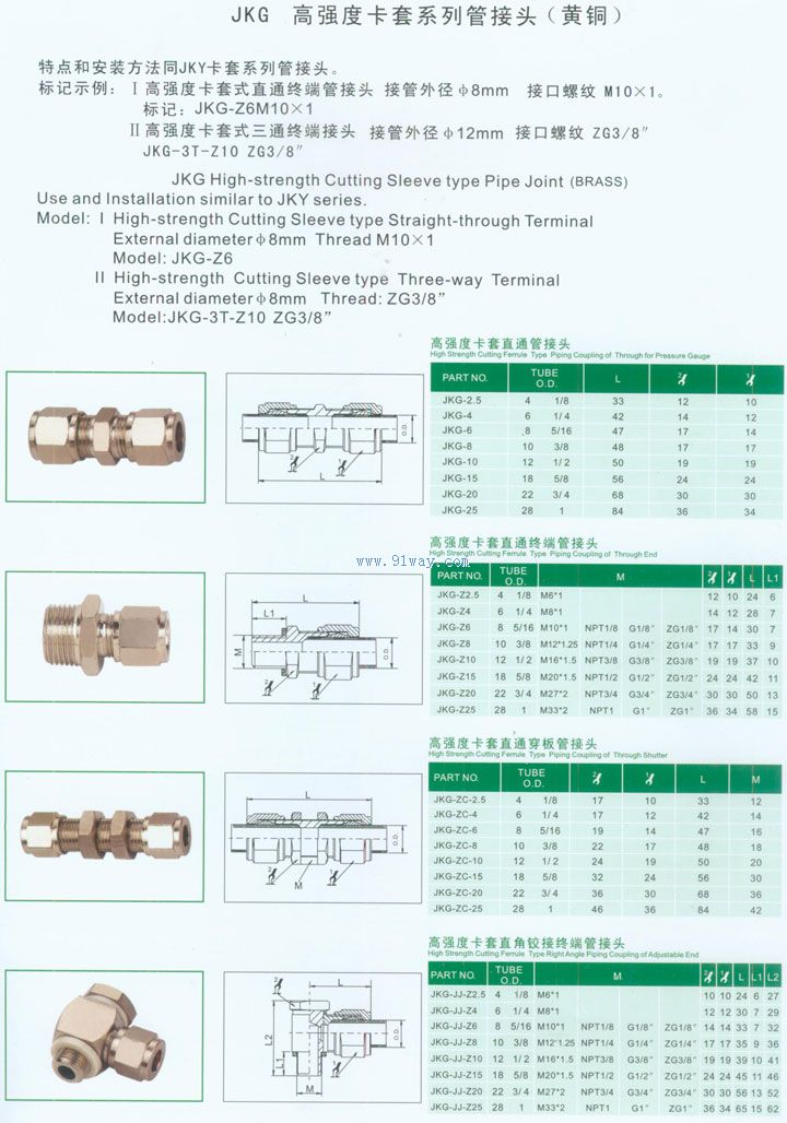 JKG高強度卡套系列管接頭(黃銅)