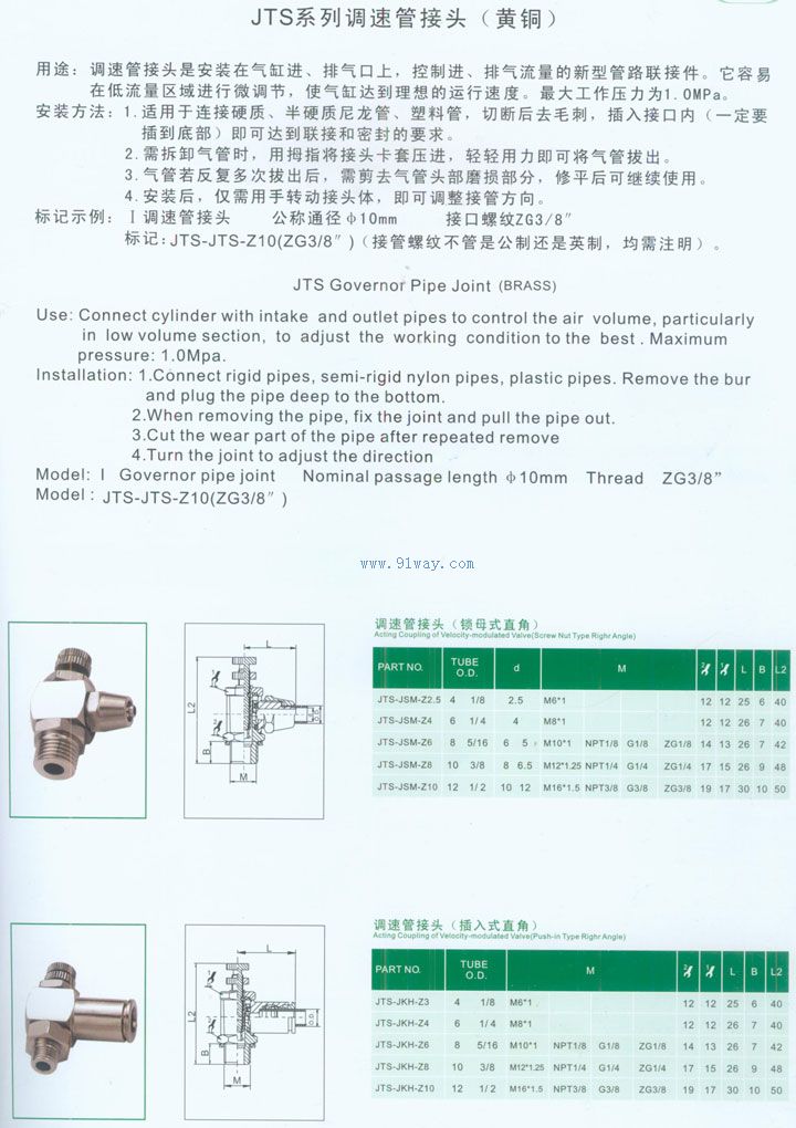 JTS系列調速管接頭(黃銅)