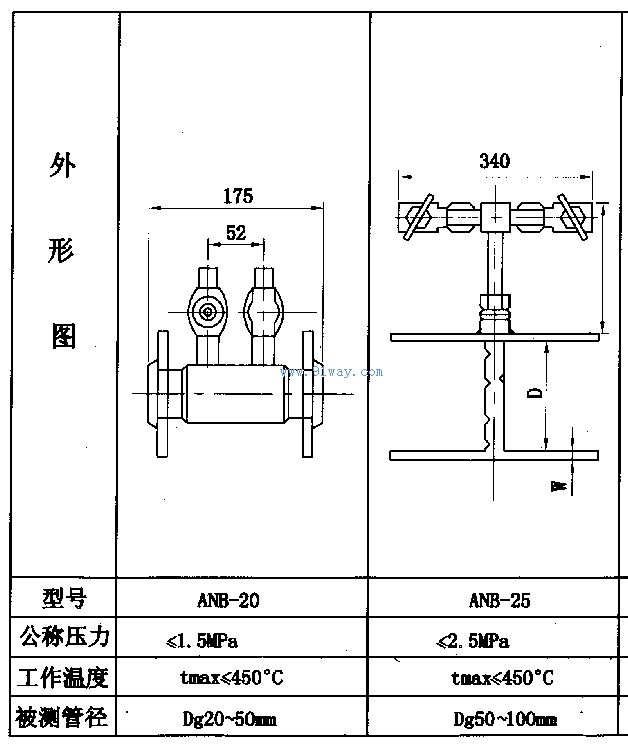 ANB系列阿牛巴流量計(jì)規(guī)格型號(hào)參數(shù)對(duì)照
