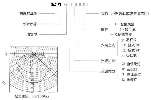 BAD56-e系列增安型防爆燈(e)型號意義: