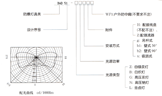 BAD51系列隔爆型防爆燈(IIB)(上開蓋)選型說明