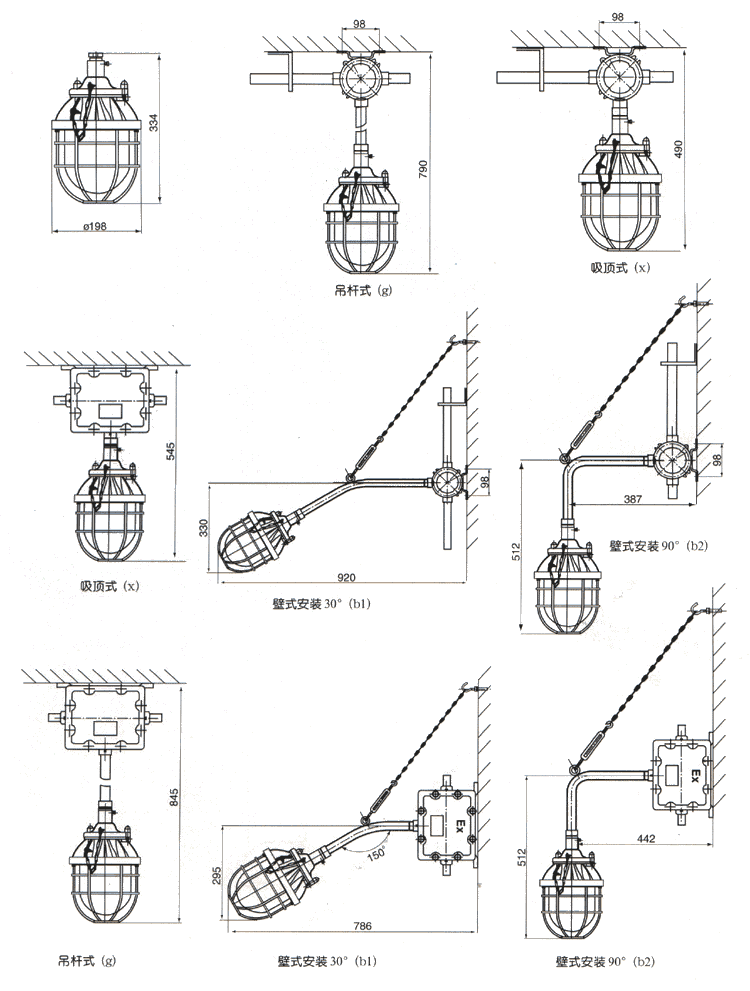 BAD51系列隔爆型防爆燈(IIB)(上開蓋)安裝示意圖